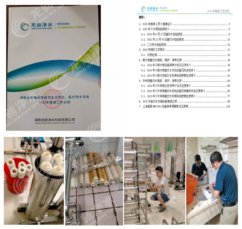 ◆行業(yè)首家獲得五星商品售后服務(wù)體系認(rèn)證,規(guī)范完善的售后服務(wù)管理辦法,日常點(diǎn)檢記錄、耗材維保記錄、故障維修記錄、水質(zhì)檢驗(yàn)記錄成套成冊建立用戶檔案。