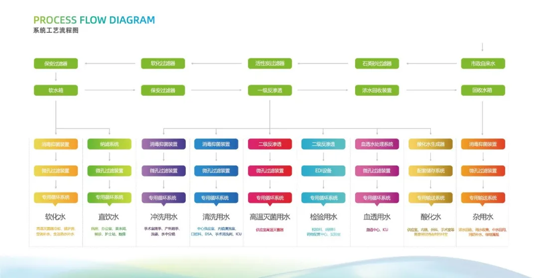 上圖為醫(yī)院集中分質供水系統(tǒng)工藝流程圖