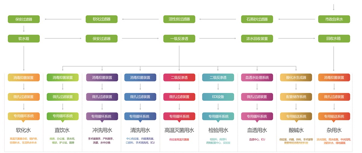 醫(yī)院水處理、醫(yī)院超純水、醫(yī)院特種用水、醫(yī)院分質(zhì)供水、中央純水、中央水系統(tǒng)、醫(yī)院直飲水